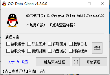QQ-Data-Clean 是一款免费的QQ数据缓存清理软件,使用它就可以快速的清理腾讯QQ所产生的缓存文件。