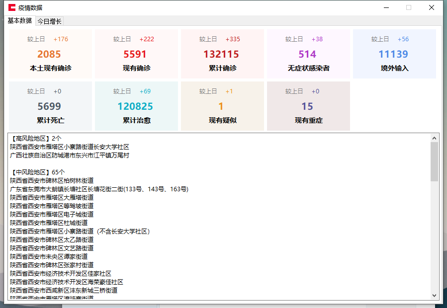 本次为大家分享的是疫情数据关注工具v2.0 可查风险地区详细