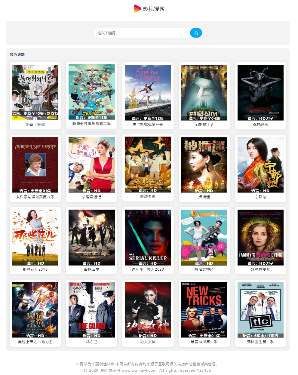 自动采集资源站最新,搜索模块,播放模块,UI也是用大众喜爱的类型。
